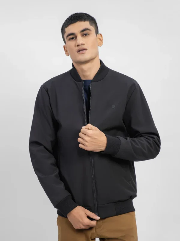 Classic black bomber jacket from FW’23 collection made with technical fabric. Featuring baseball collar with black zip & metal emblem, this everyday bomber jacket is warm & a perfect winter essential.